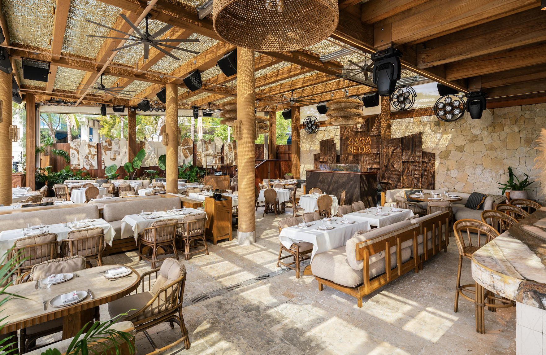 CASA NEOS Restaurant invites you on a voyage through the rich culinary culture and vibrant flavors of the Mediterranean. Offering a delicious modern cuisine, inspired by the shores of the Mediterranean. The venue is open for dinner, and weekend lunch, and conveniently accessible by boat from the river, through CASA NEOS Beach Club.
